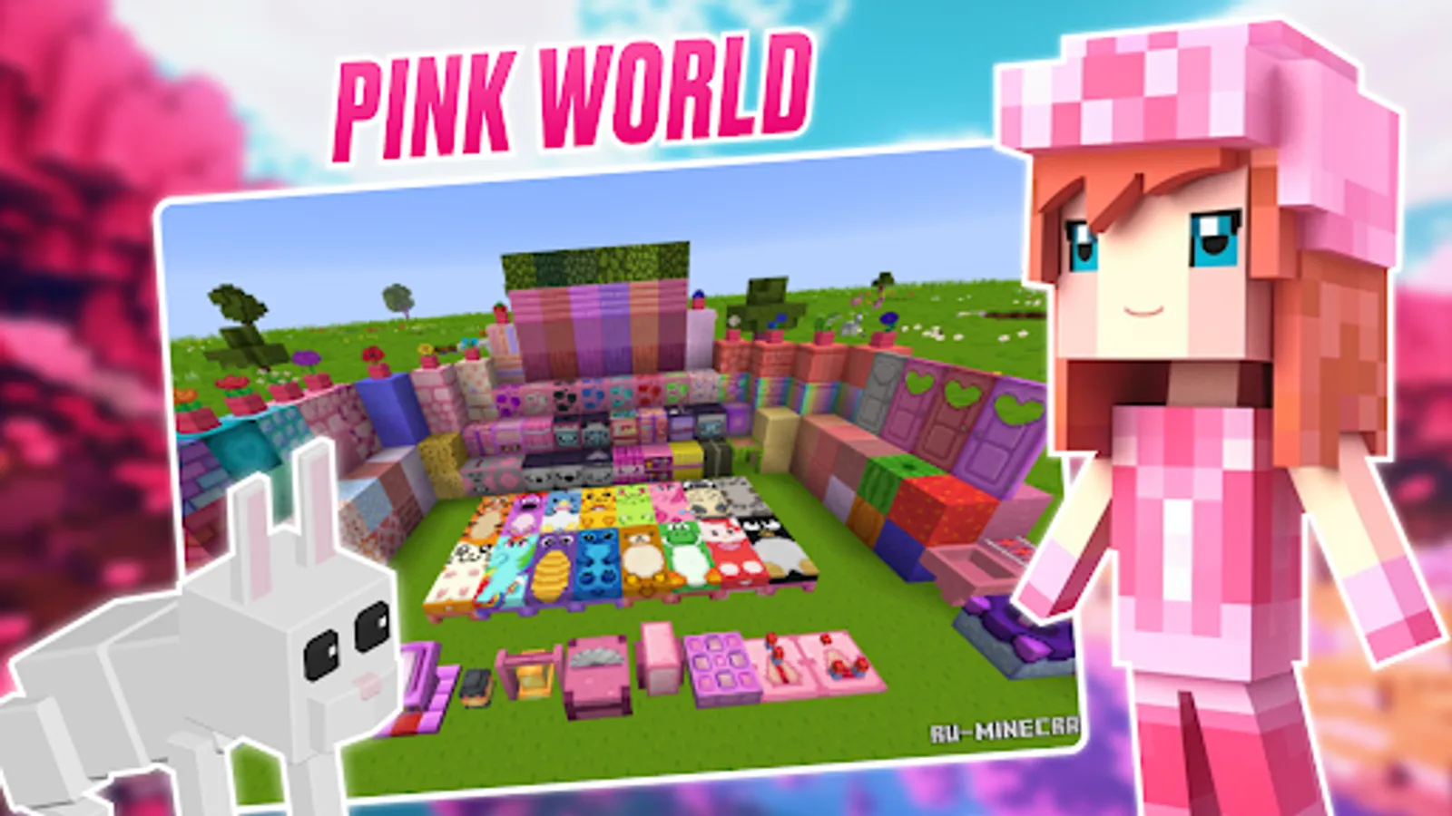 The kawaii world Minecraft 2 mod is the long-awaited world - the pink addon that all lovers of the kawaii texture pack for Minecraft universe have been waiting for. MCPE Bedrock will now sparkle for you with pink flowers, from which you will not be able to look away. A cute kawaii texture pack for Minecraft will simply captivate you with its delicate colors, where each block / blocks, or rather their texture, shimmers synchronously from the rays of the sun in survive mode.