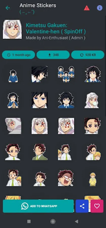+100000 Anime Stickers & Animated For WhatsApp WAStickers is the best collection of amazing anime chat stickers for WhatsApp. is a compilation of fan made anime stickers and made personal by us of your favorite anime For WhatsApp, enjoy sharing ( 100,000 anime stickers ) one hundred thousands of Anime WAStickers with your friends you your family!