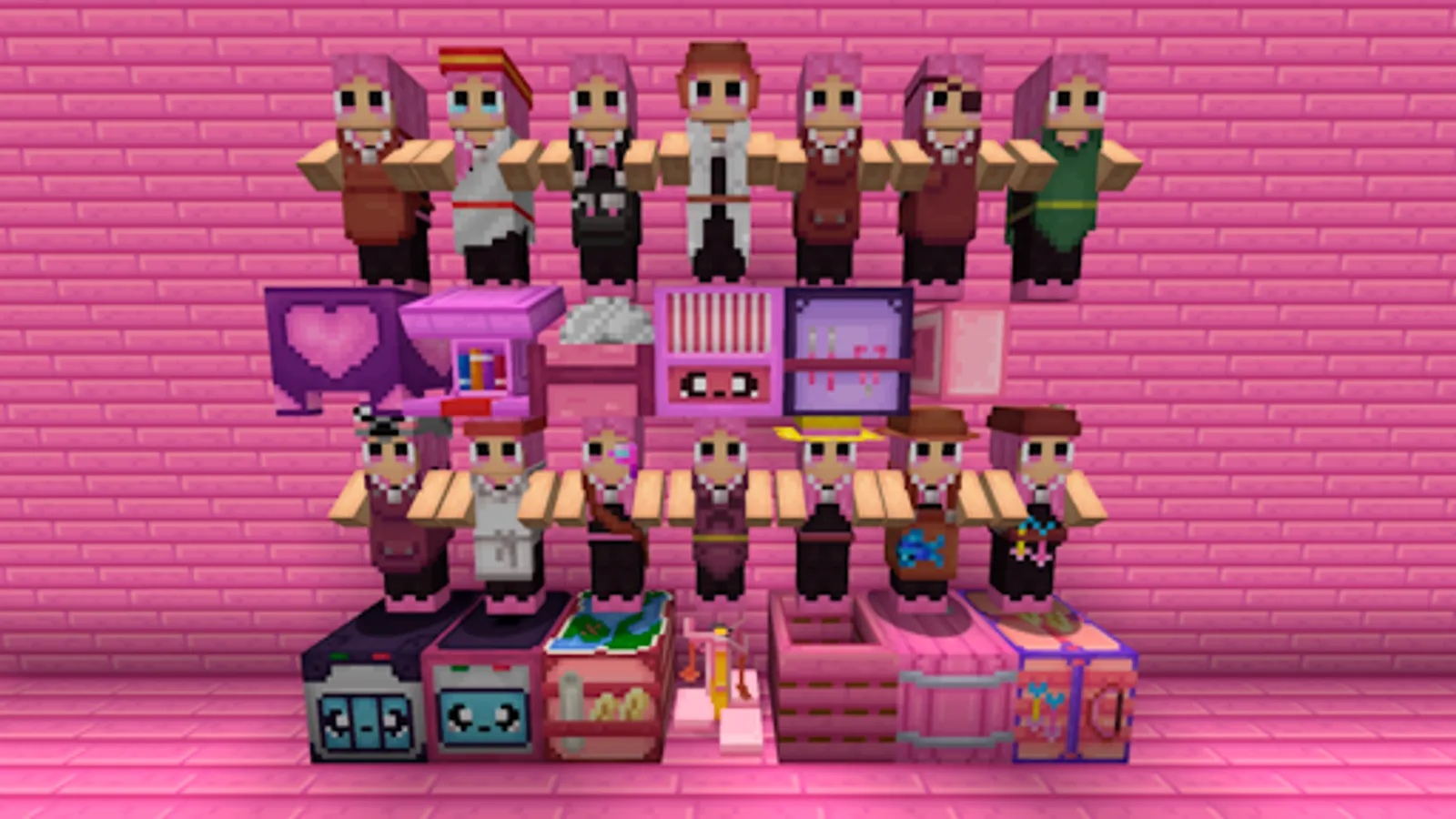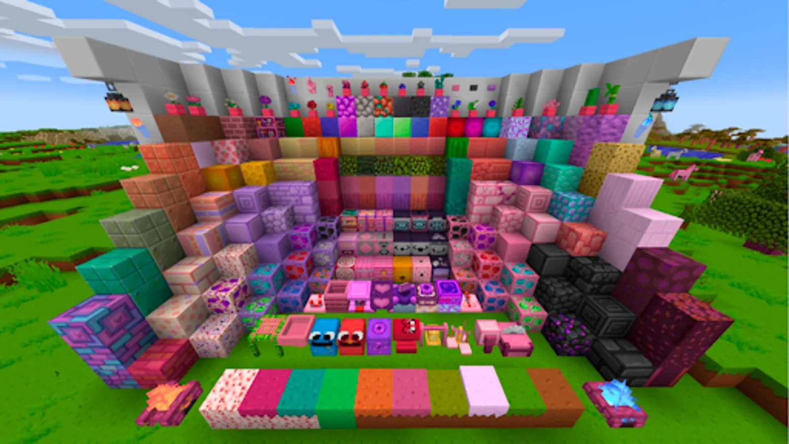Your map will now look completely different with Pink mod Minecraft Kawaii World Bedrock or Pink Minecraft and girl minecraft skins in survival mode