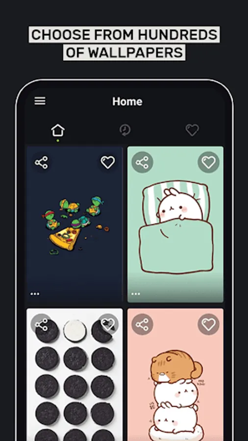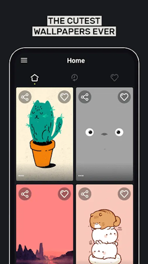 What type of kawaii wallpapers will you find in our app? There are various types of backgrounds, for example kawaii anime wallpapers, kawaii food, pretty landscape wallpapers, fluffy characters and so much more kawaii wallpapers that you can set as your home or lock screen wallpaper right from within the app.