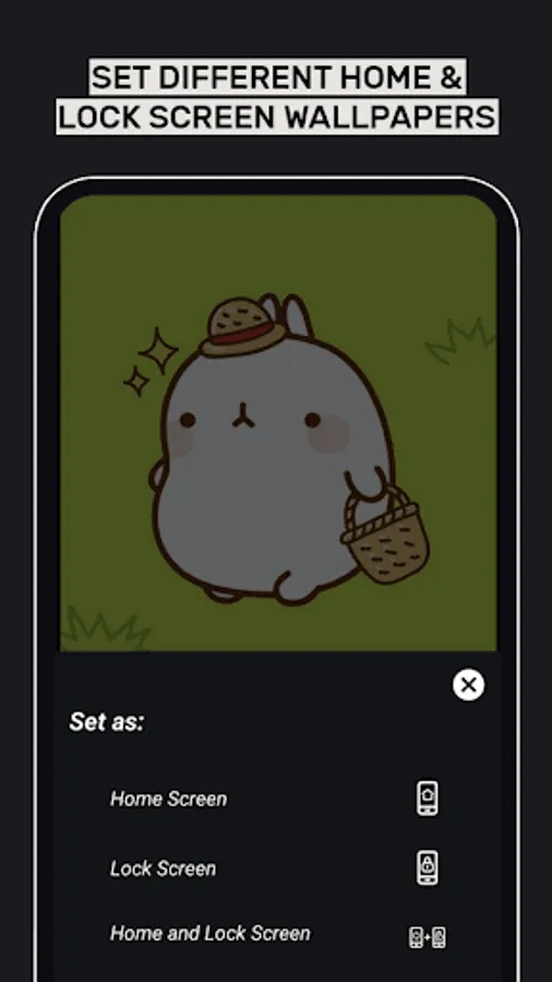 • Set wallpapers to either home, lock screens or both.