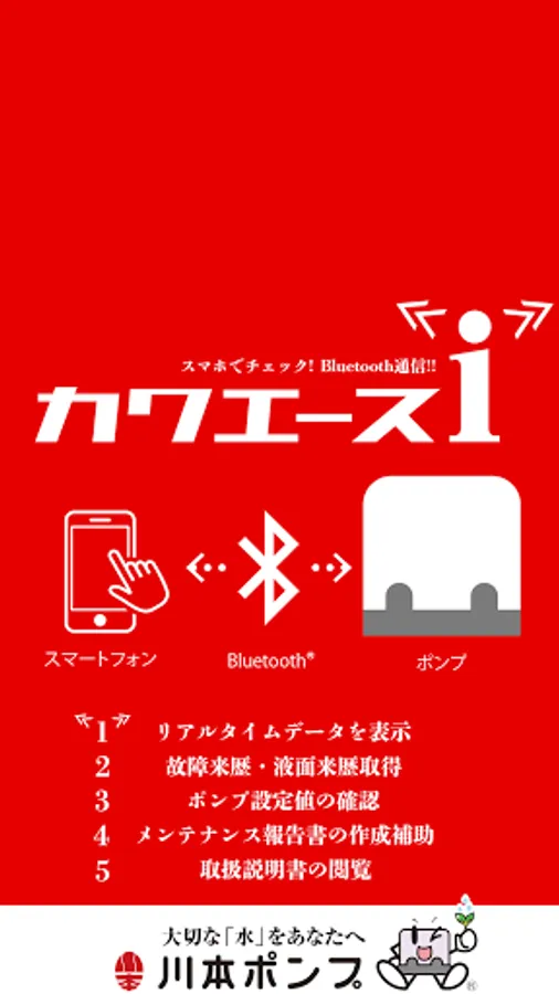 Kawa Ace i is an application that allows you to easily check the operating status and failure history information of household pumps using Bluetooth® communication.