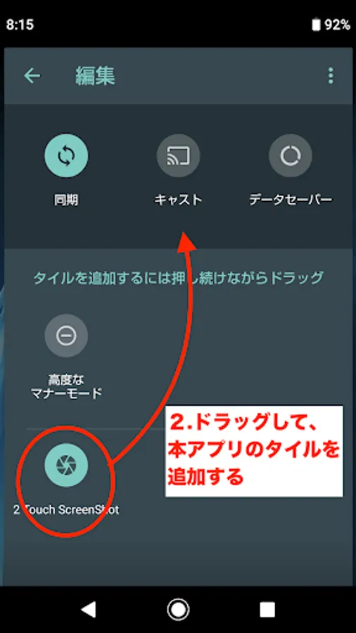 By adding the tile of this application to the quick setting panel, you can take a screenshot with 2 touches.