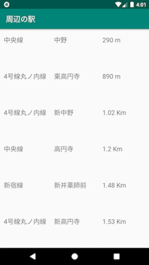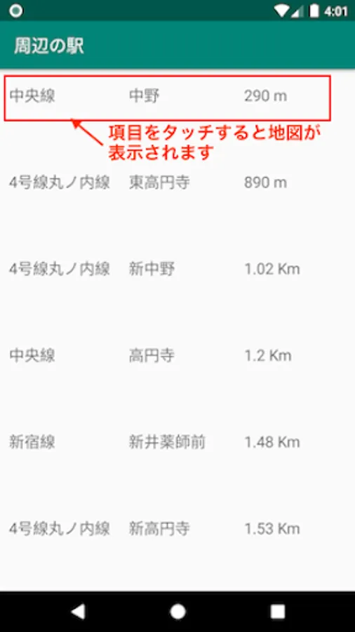 The items in the list are "Route name", "Station name", and "Distance from current location".