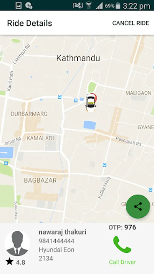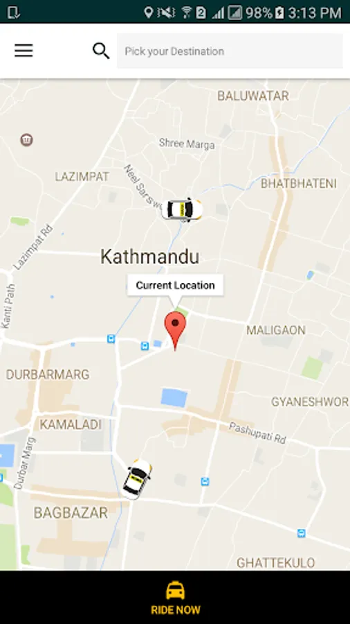 Kawa allows you to hail cabs around your periphery. There are currently around 200 cabs in the system in Kathmandu with more cabs being added daily. The target is to reach 1200 cabs.
