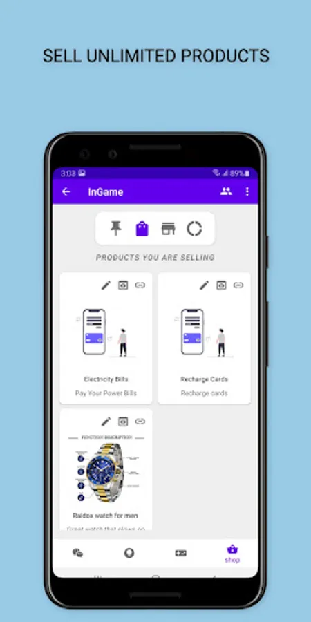 Easily display and sell products to your friends. Ingame helps you create your store, products and allows you easily showcase them to your friends and potential buyers.