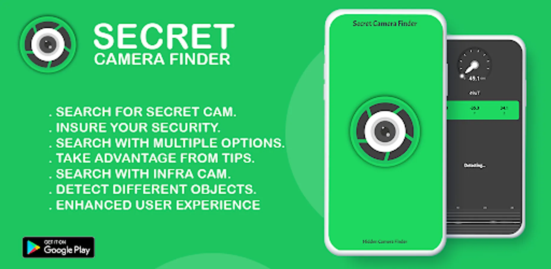 Hidden Camera Detector - Spy Camera Finder. app protects you from spy cameras. If you are out of the city you stay at a hotel with family so for privacy you need such hidden camera detection and hidden microphone detector app through which you can discover Use your Smartphone and hidden camera finder-spy Camera Finder application and bring it close to any device that you have a doubt on.