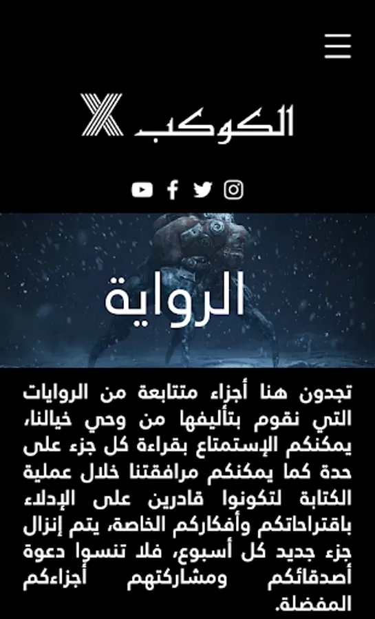 Planet X is a literary blog that presents its readers with a variety of horror, suspense and fantasy stories in Arabic and in an unusual style, in addition to news, literary and artistic articles in various fields.