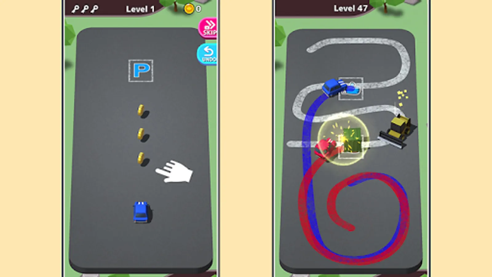 All the parks are always crowd, so please tap and draw lines to control cars and lead to the parking.
