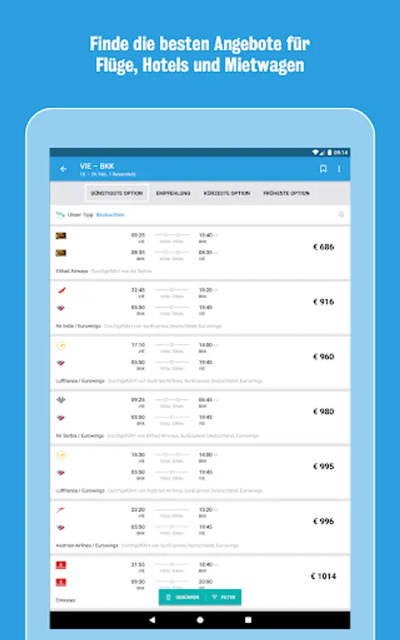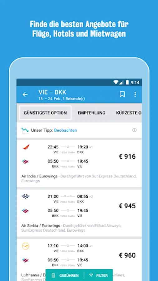 checkfelix searches hundreds of travel sites so you can sit back and relax. Find the cheapest flights, hotels and car rentals. Save money with offers in the app and Private Deals. With checkfelix Trips organise all your travel plans in one place. Stay updated on changes in prices to date, receive updates on your flight in real time, take a look at terminal maps and find out about the waiting times at the security checkpoint. Compared to the prices of more than 700 airlines, for example, Austrian Airlines and Lufthansa, as well as by low-cost carriers such as Fly Niki and German Wings. checkfelix is the only app you need to plan, book and manage your trips.