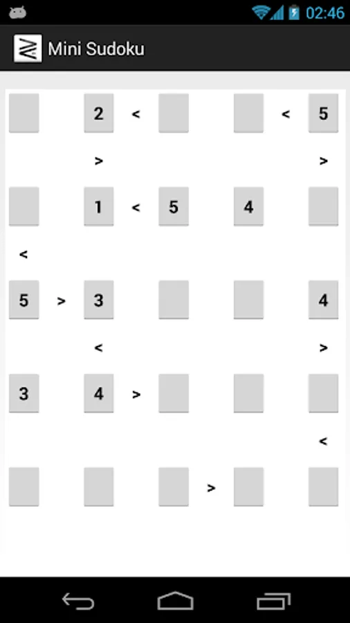 Fill in the 5x5 grid with the numbers from 1 to 5, using each number only once per row and column, while following the greater than (>) or less than (<) symbols shown. There is only one valid solution.