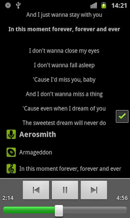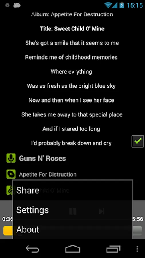 Stock Android Music App with embedded lyrics support ( Lyrics3v2 & ID3v2 )