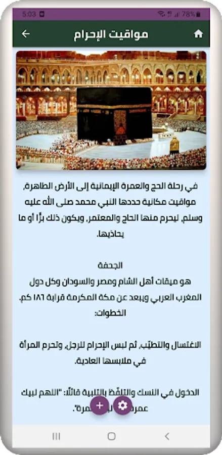 An application that contains an explanation with pictures of how to perform the rituals of Umrah and the rituals of Hajj for Muslims, and what they include of circumambulation, striving, standing on the day of Arafah, and others.
