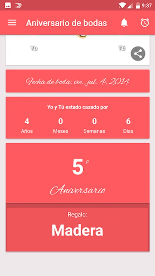 Countdown to the next anniversary or counting days from the day of the wedding.