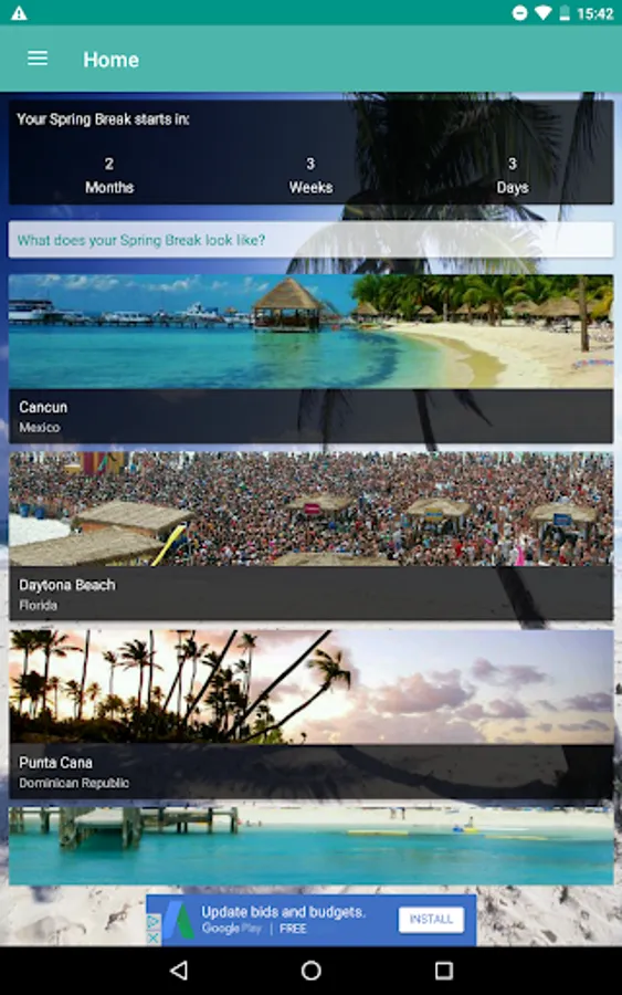 Spring Break Planner is the best app for college students that are planning their spring break vacation.