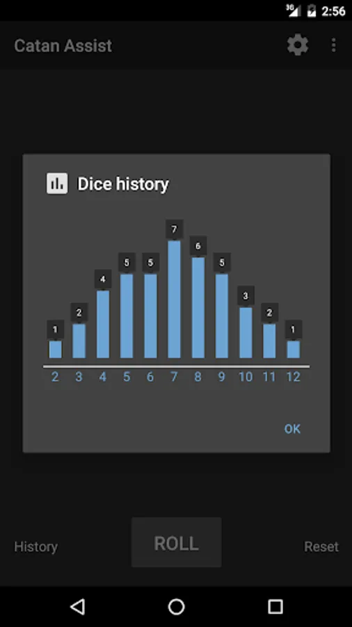 The dice simulator can be used to reduce the luck factor during the game. By reducing the probability for numbers that have occurred more frequently than expected, the game will contain less luck and become more strategic. Of course, the amount by which the "luck is filtered" can be adjusted and by setting it to zero is becomes a completely normal game again.