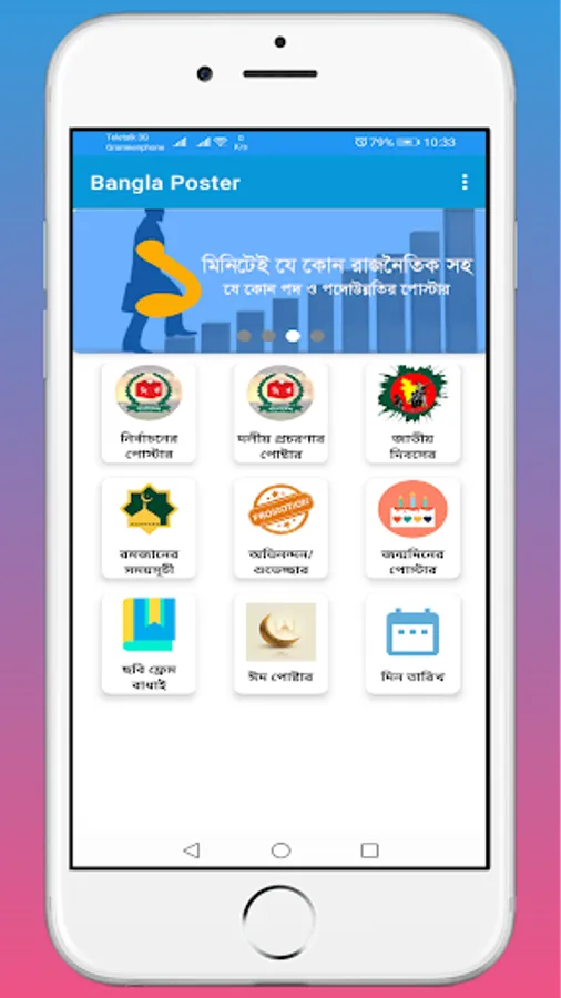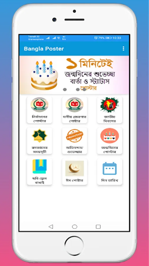 With Bangla Poster (বাংলা পোস্টার) apps you can now create 100 types of posters. These types have different templates.