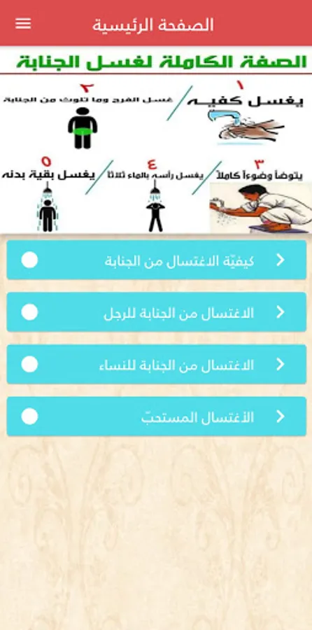 تطبيق الاغتسال من الجنابة التطبيق سهل الاستخدام