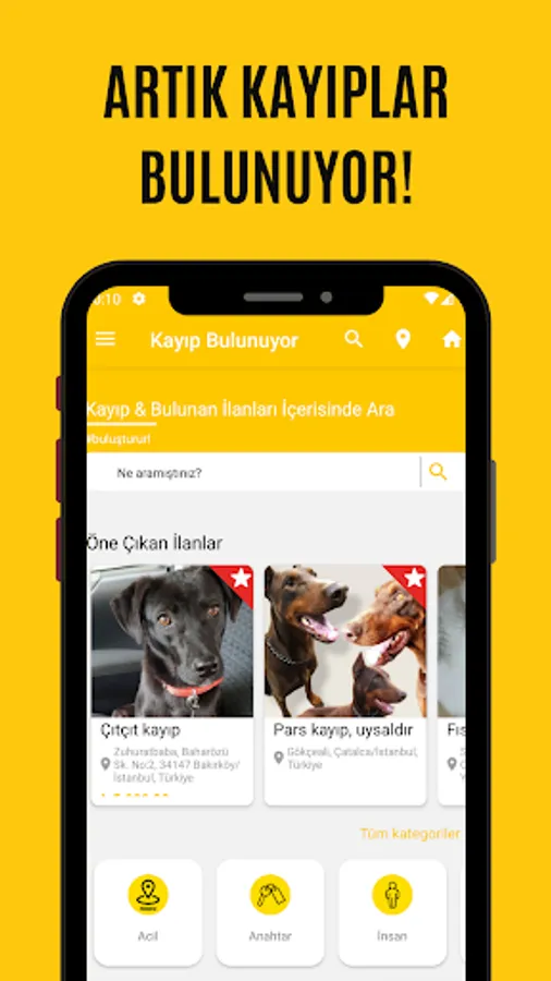 Now you can post all the missing ads from a single system, and you can follow up the ads more easily. Thanks to a wide range of categories, especially people, pets, valuables, clothes, IDs, passports, you will now be able to get results much faster on a single platform. Now missing is found with "Lost Found"!