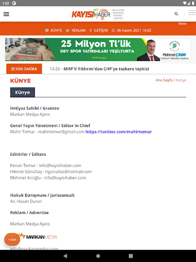 Everything about Malatya is in Apricot News... Follow Apricot News with Politics, Special News, District News, Sports, Yeni Malatyaspor, Economy, Public Security and columns.