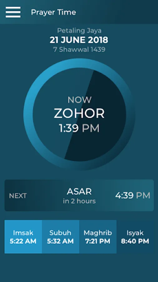 • Includes Imsak, Subuh, Syuruk, Zohor, Asar, Maghrib and Isyak time