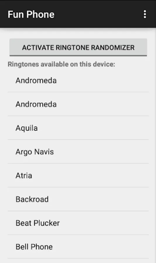 Wanna have fun with your friends ? Here you got one. Install this app, run it and turn it on .. There you go. Now each time your friend's phone ring it will play different sound. And they won't ever get to know whose phone is ringing.