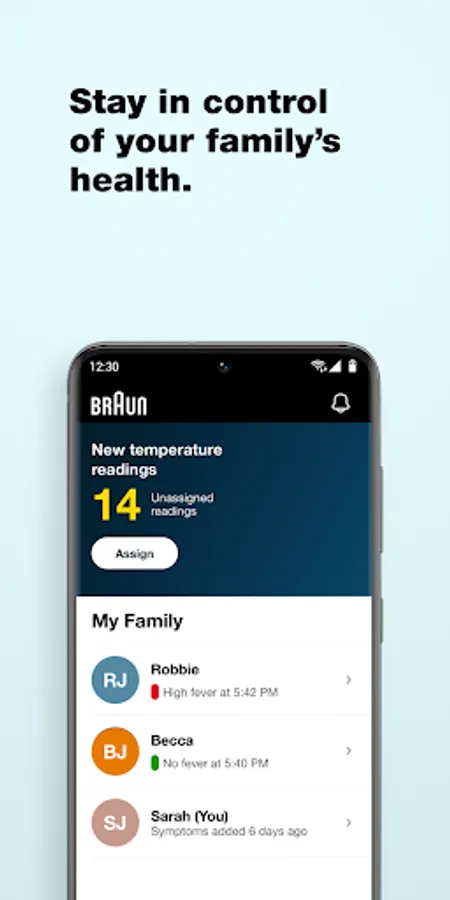 Braun Family Care helps you stay in control of your family's health all along their illness journeys, from first signs of illness to full recovery. Created exclusively for use with Braun’s connected thermometers, the app automatically syncs temperature readings for each user via Bluetooth and provide you with trusted guidance and homecare advice.