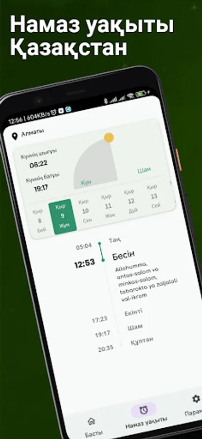 This application shows exact prayer times for all cities of Kazakhstan.