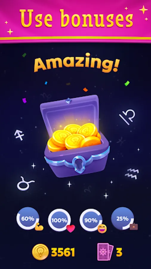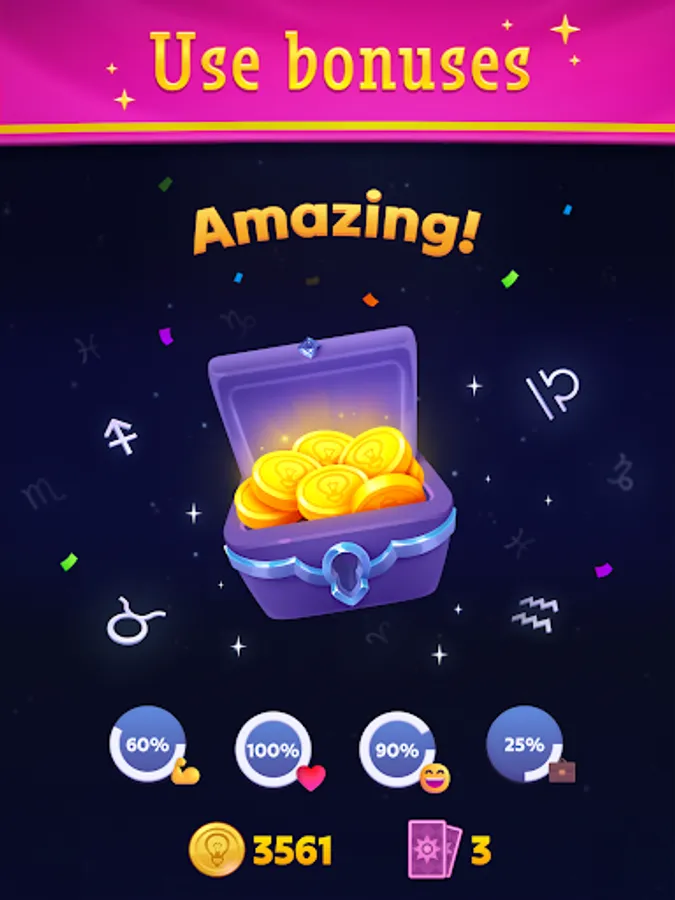 Explore the solitaire world with the “Solitaire Astro Horoscope Card” game where you can collect tokens and find answers to questions about love, life, and the future. Solve adventure card puzzles, discover exclusive card meanings, and receive personalized advice!