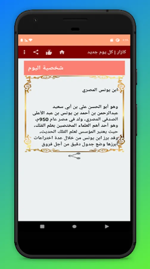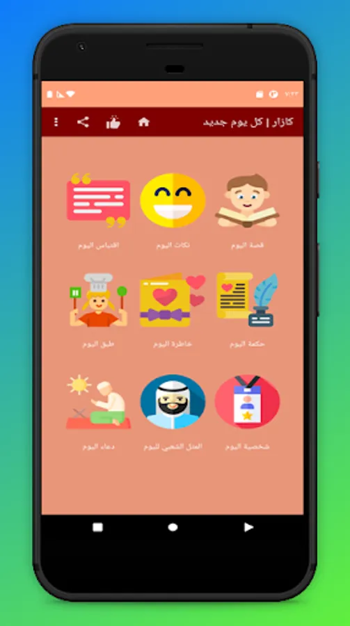 The idea of the application is based on displaying daily content to the user automatically so that it displays the data stored within the application automatically, every day new content for each section of the application.