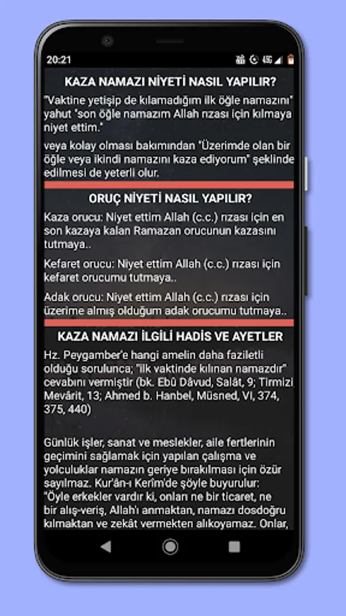 With this application, you can calculate your qada prayers, prepare fasting list and save your data.