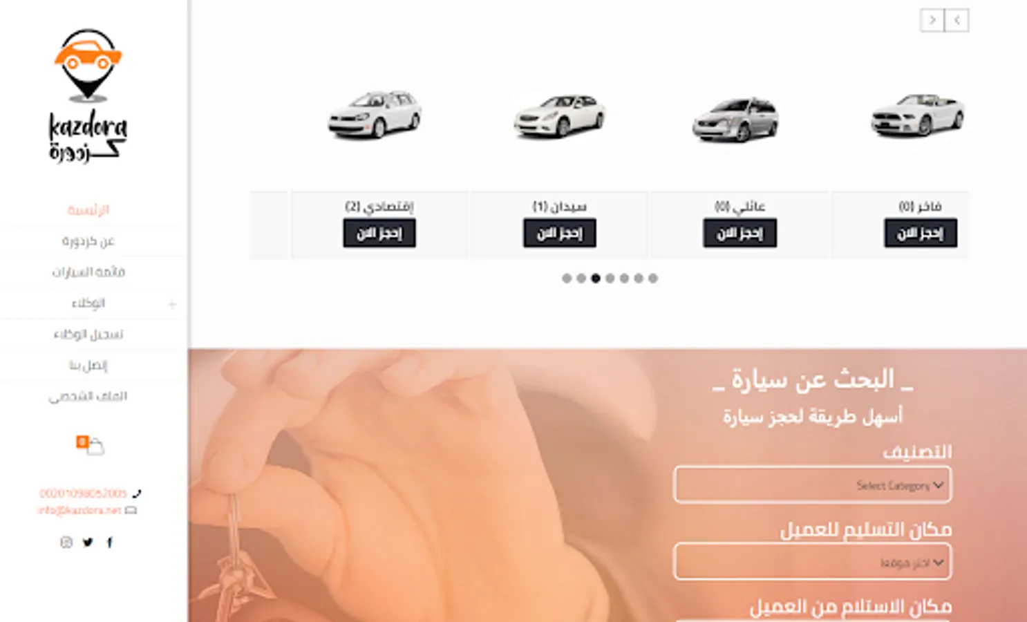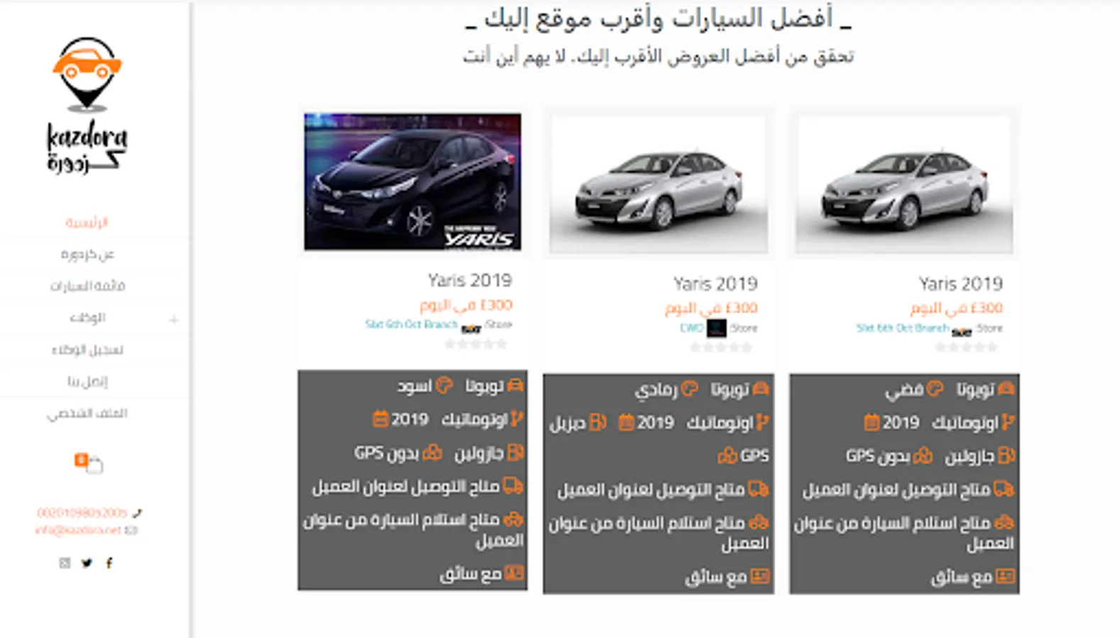Kazdora is the first website and smart application in Egypt that serves all parties of the car rental sector by providing the renter with a range of choices from thousands of cars offered for rent from many major rental companies (allies) to ensure the best price and the highest service anywhere and Any time through a smart mobile phone and with the push of a button, the car will deliver you to your place.