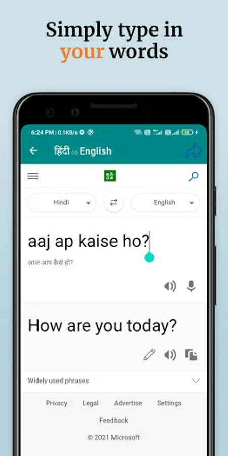 3. Type in words/sentences in the textbox and wait for a few moments. You can also copy text from somewhere else and paste in the app for translation to your desired language.
