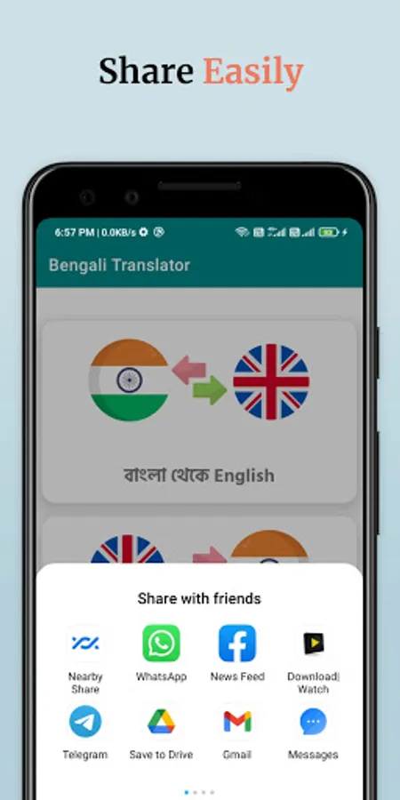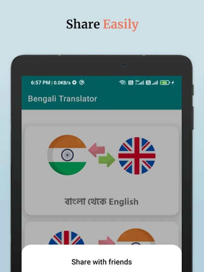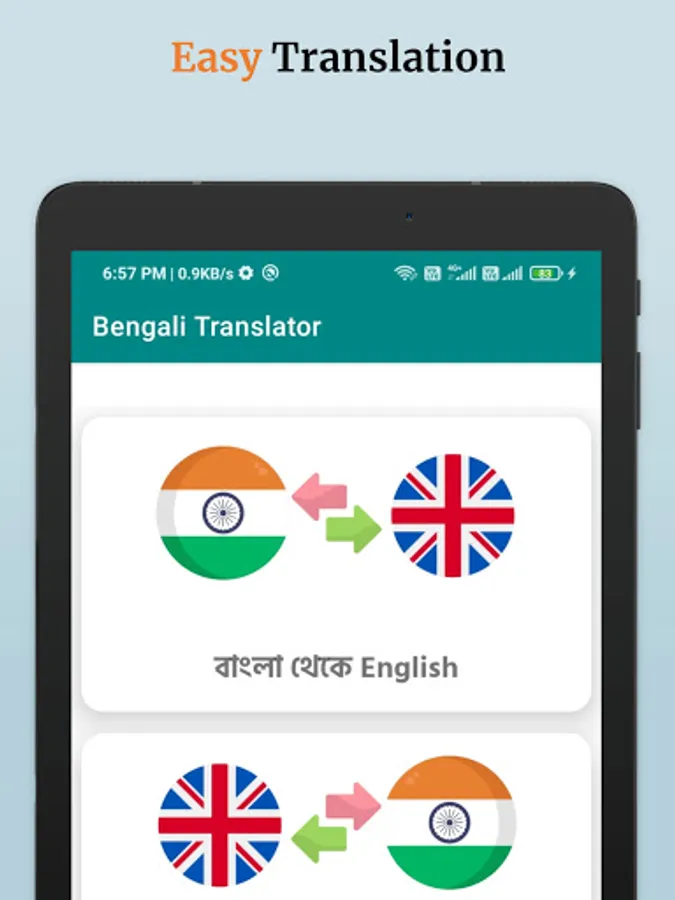 Easy Bengali to English and English to Bengali translator app is a easy to use tool for translation works. You can easily input any text in Bengali and it will output result in English text. You can use speach to text input feature also.