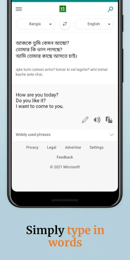 3. Type in words/sentences in the textbox and wait for a few moments. You can also copy text from somewhere else and paste in the app for translation to your desired language.