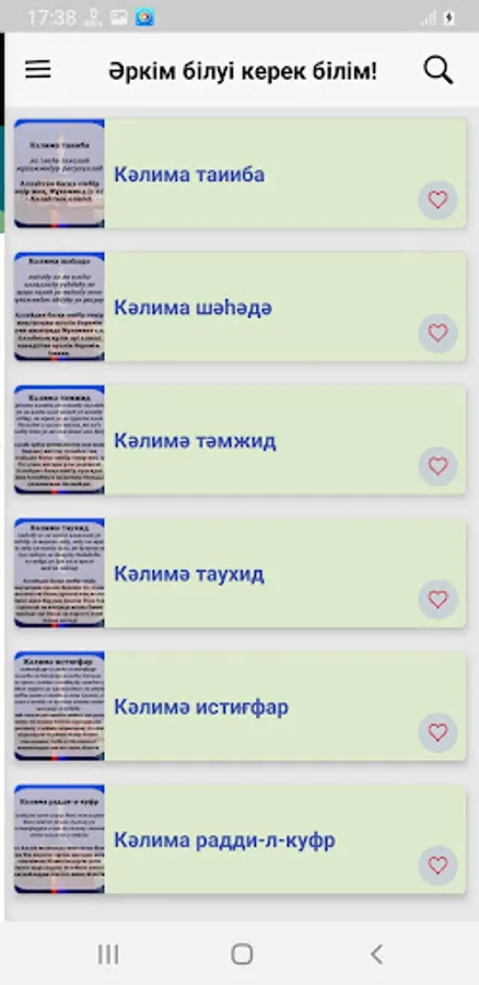 The Six Words (Arabic: kalima, "meaningful word") are words collected from the Qur'an and the hadiths that are repeated by Muslims around the world. It is memorized in order to remember and understand the basics of Islam.