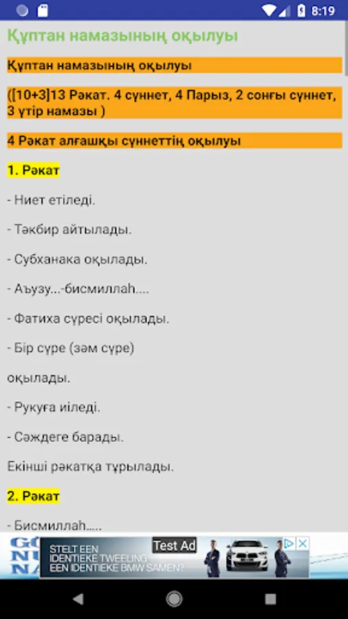 Namaz oyyp oyrenu algisi (suretterimen) Abu Hanifa of the boyinsha madhhab. • Islam dini - eң taza din