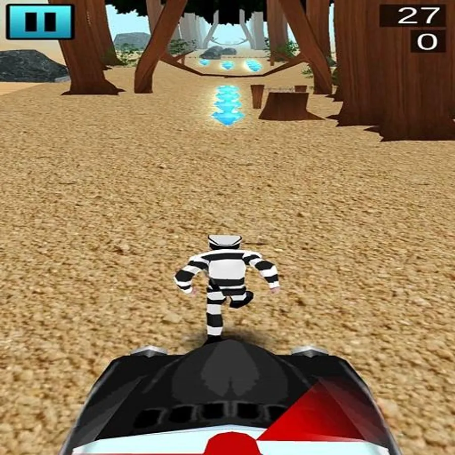 He tried to run away from the police car without Thompskk and without shock in one of the columns or trees in the way