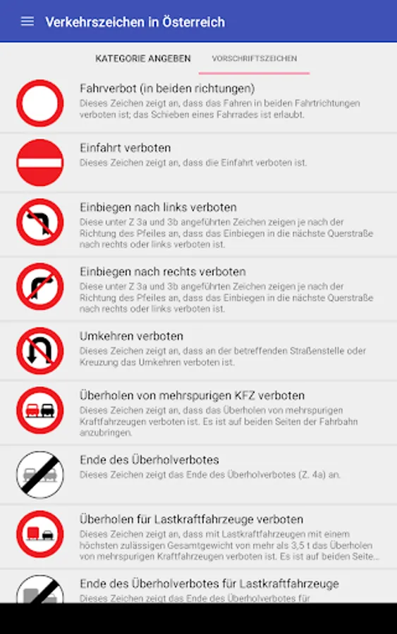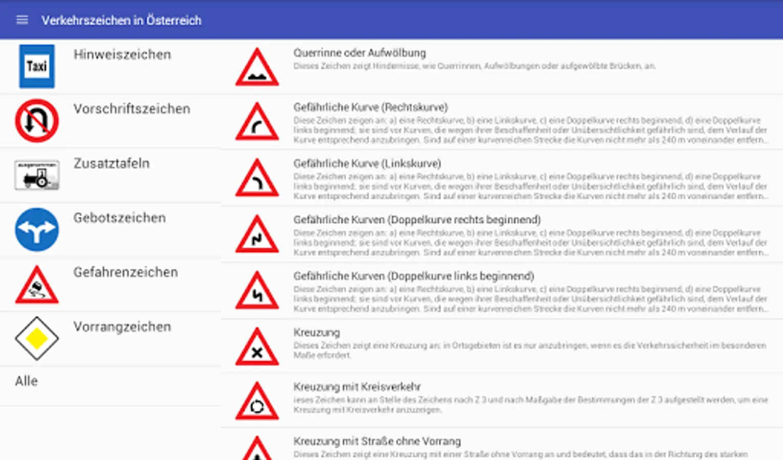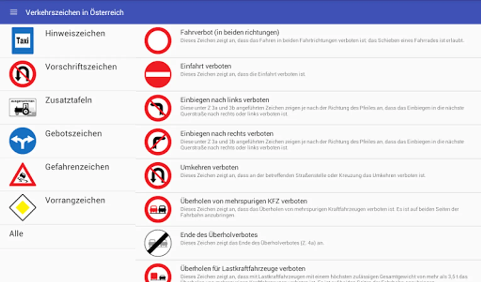 The Chalkboard of the road signs in Austria shows a selection of important in Austria anchored traffic signs. You are in the Road Traffic Regulations (StVO) in section "D. Road signs "set forth in the paragraphs 48 to 54.