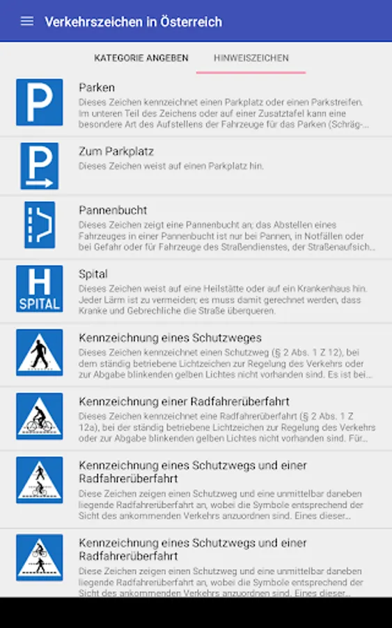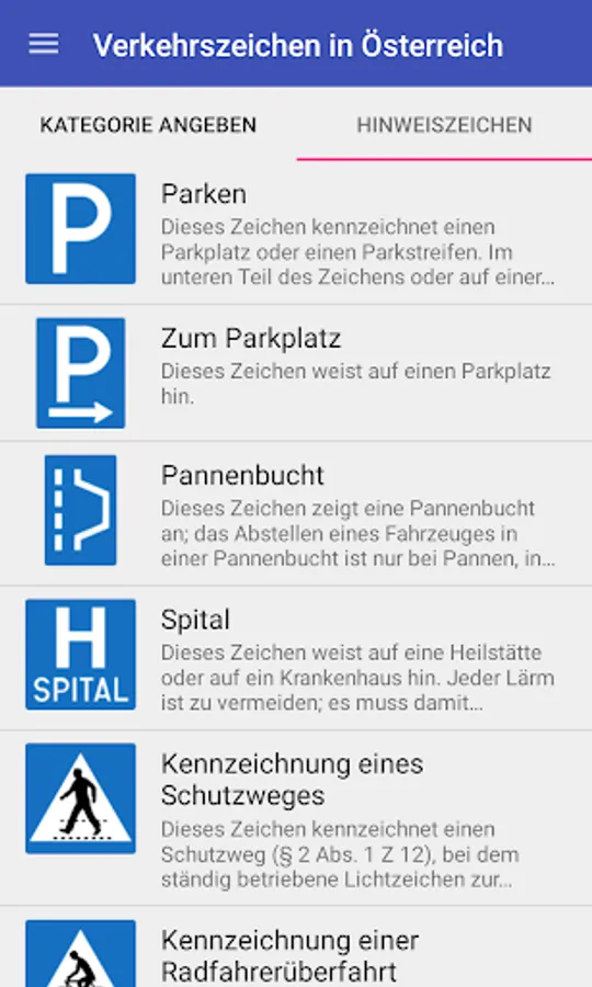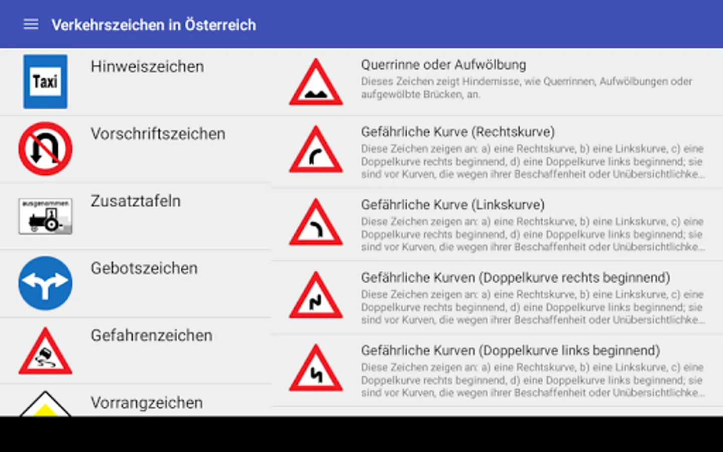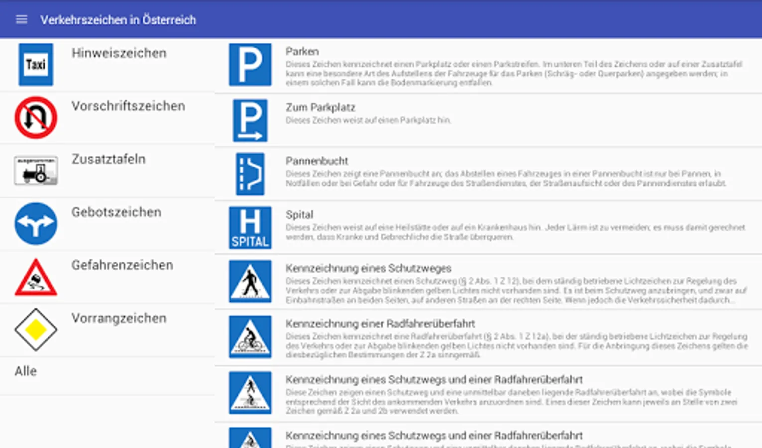 The Chalkboard of the road signs in Austria shows a selection of important in Austria anchored traffic signs. You are in the Road Traffic Regulations (StVO) in section "D. Road signs "set forth in the paragraphs 48 to 54.