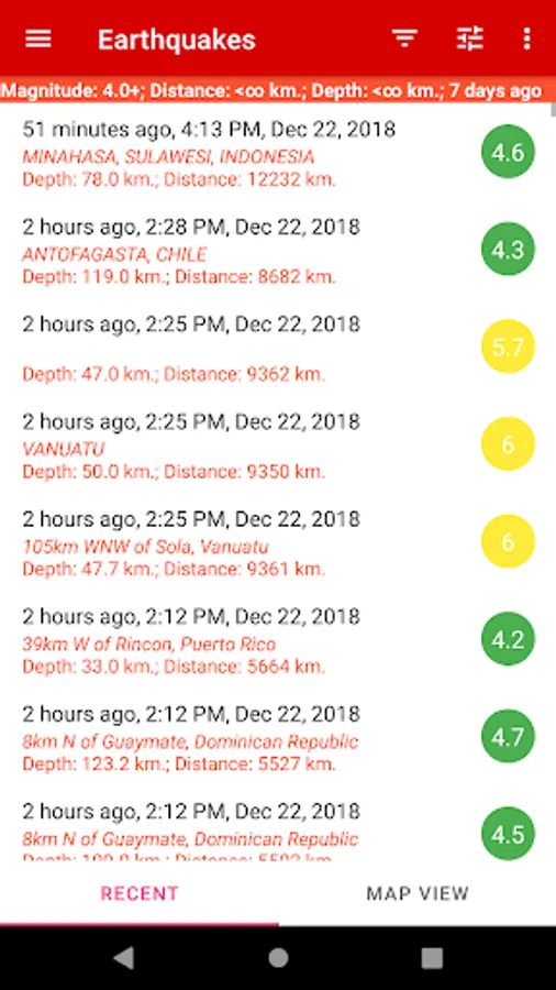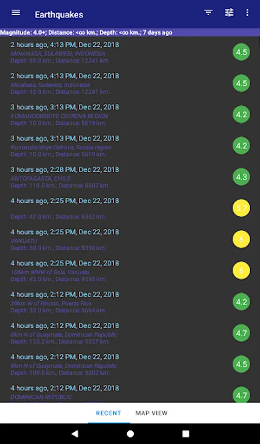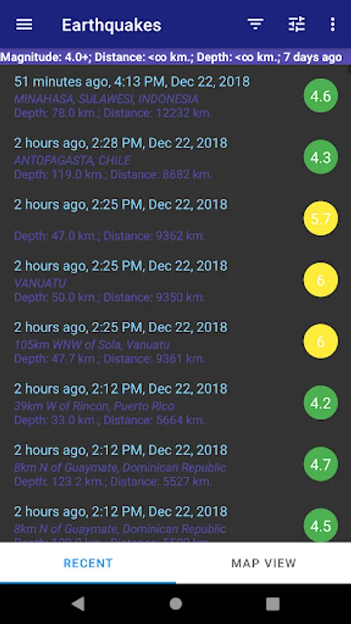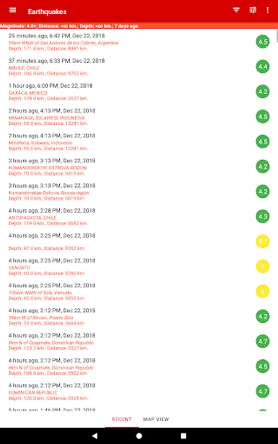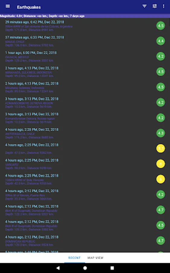 In addition to the list and map views, this application also provides detailed information about each earthquake, including its depth, magnitude, and intensity. Users can also access a history of past earthquakes, which allows them to track the frequency and distribution of earthquakes over time.