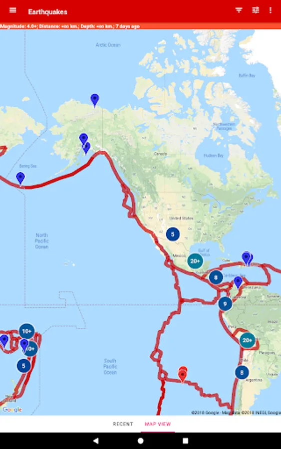 Data on earthquakes are taken from the official “USGS” program, “European seismic program” - “EMSC” and “New Zealand GeoNet service”.