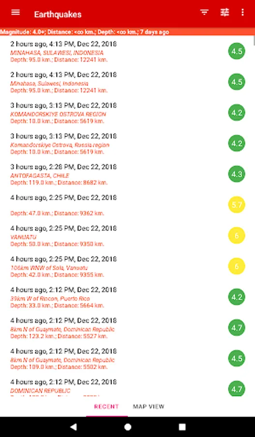 Users can filter the list of earthquakes based on strength, distance from their current location, and depth. This makes it easier for users to find earthquakes that are relevant to them, and to see how close earthquakes are to their current location.