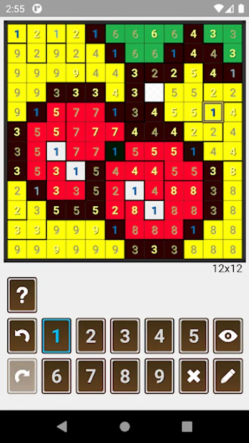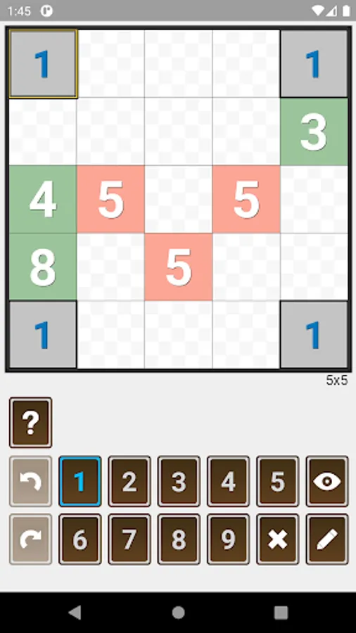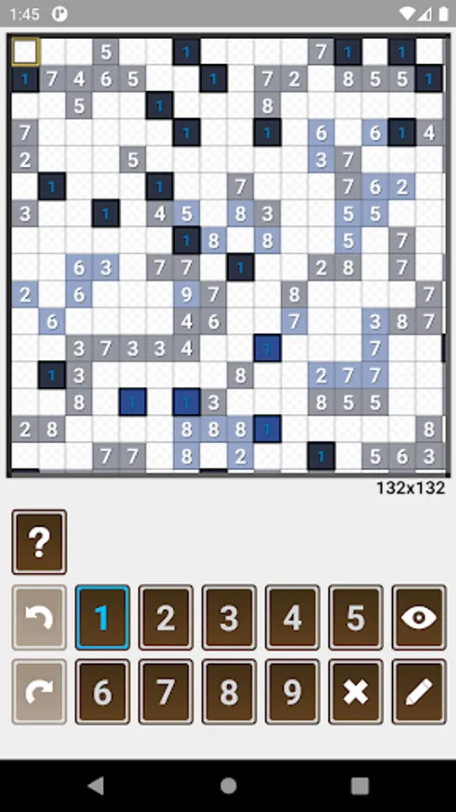 Fillomino is played on a rectangular grid with no standard size; the internal grid lines are often dotted.