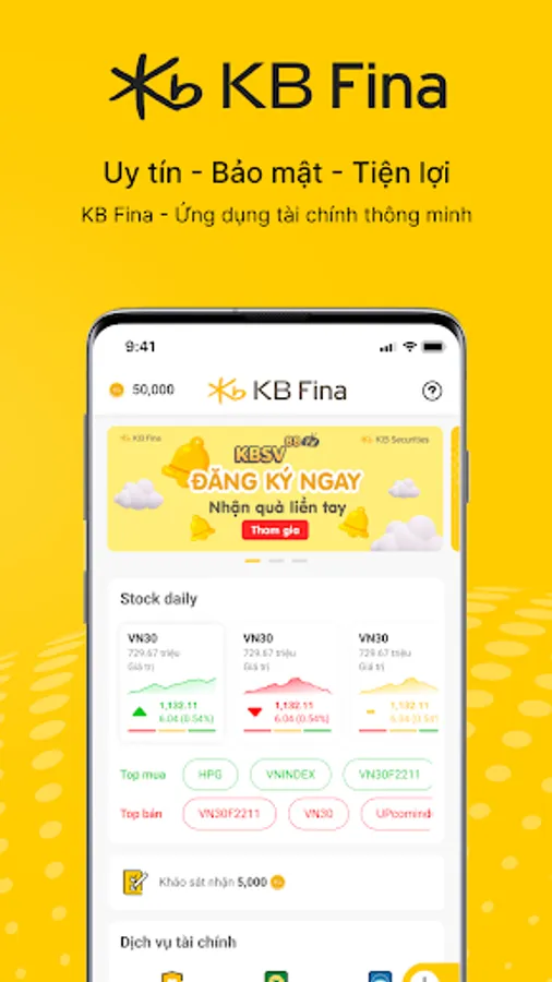 Open a KBSV account online: Allows users to open a KBSV account right on the application with just a few simple, fast and extremely convenient steps.