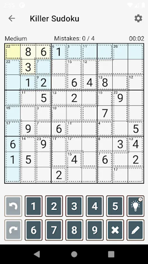 Killer Sudoku will let you enjoy an exciting experience! Jump into the new Sudoku gameplay, solve tons of new challenging number puzzles, and train your brain!