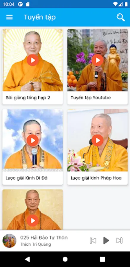 Synthesize the lectures of Venerable Thich Tri Quang, thanks to listening to his lectures, we have gained more understanding about Buddhism, more understanding about cause and effect, so now I create an application for you to enjoy. Buddhists can have 1 application to listen to the teacher's lectures anytime, anywhere