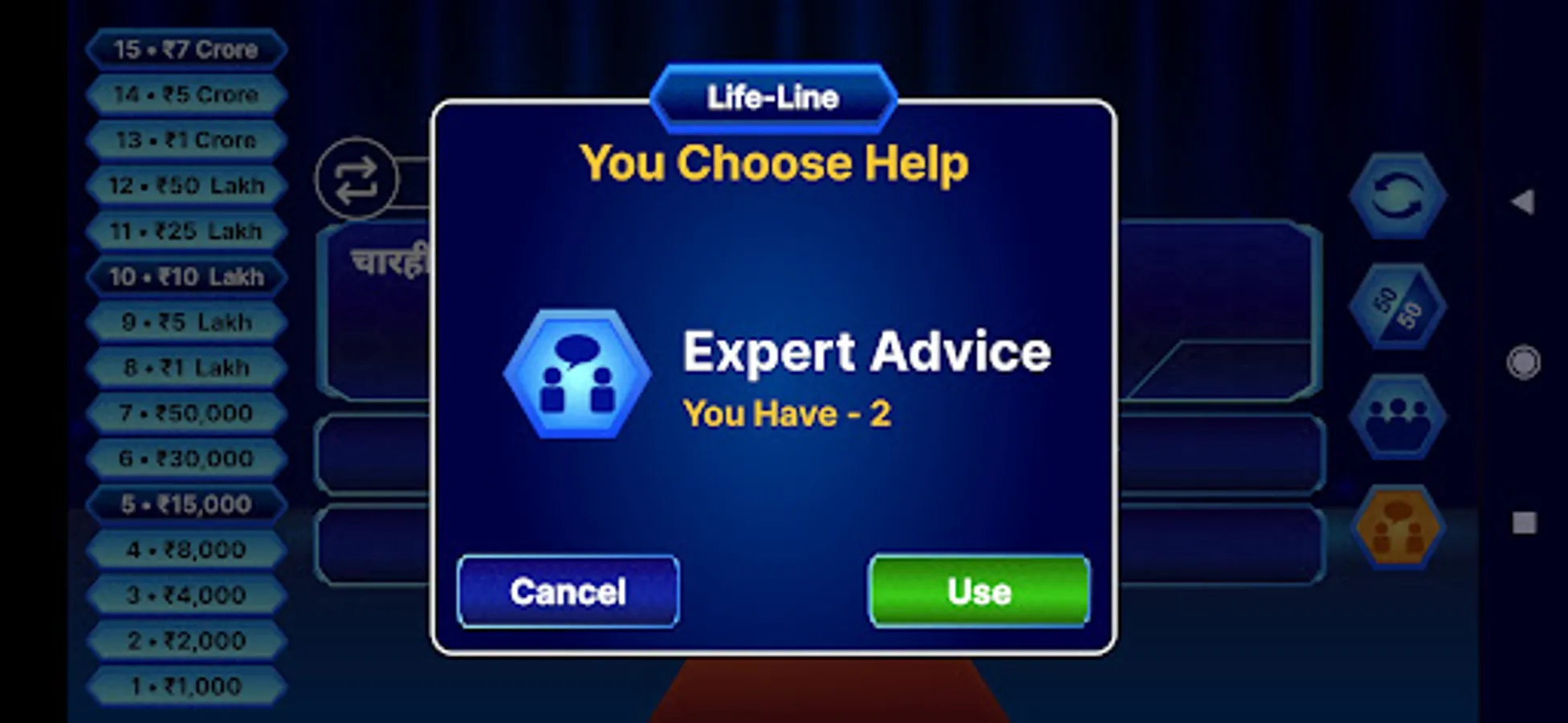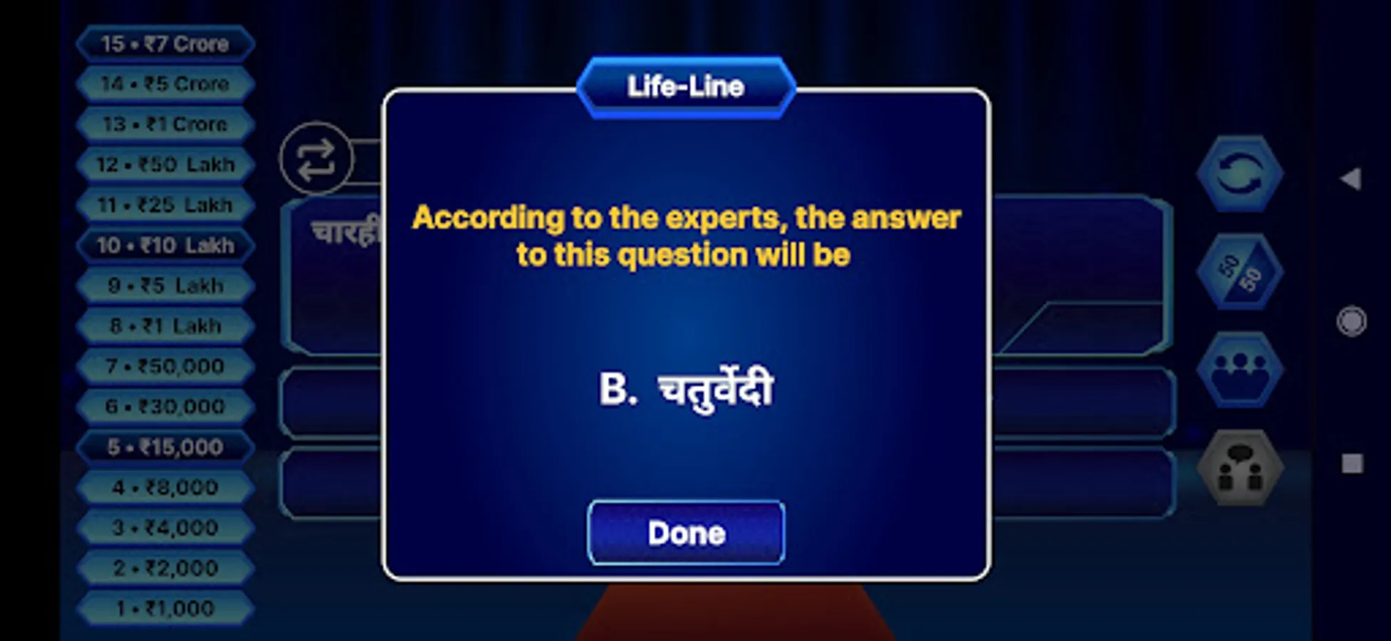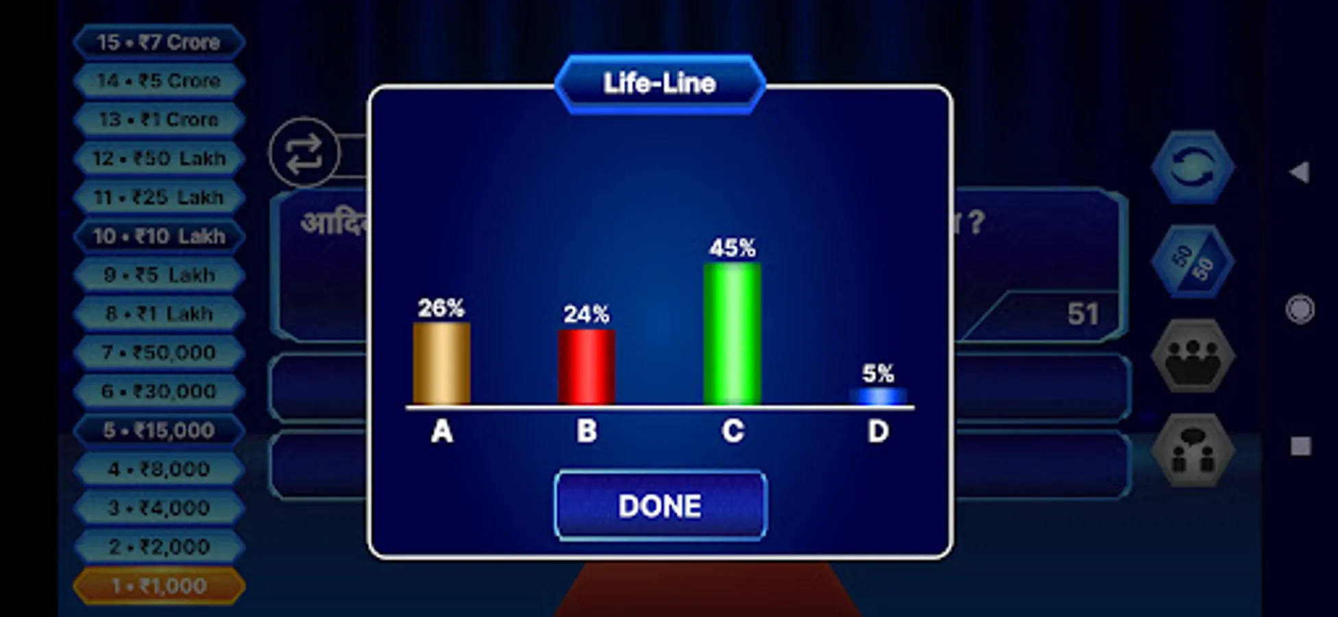 The audio and graphics in this KBC quiz game create the impression of being on a real KBC set.