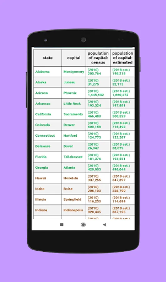 • State capital and population according to census of 2010 and estimated 2018 population of 50 states of United States.