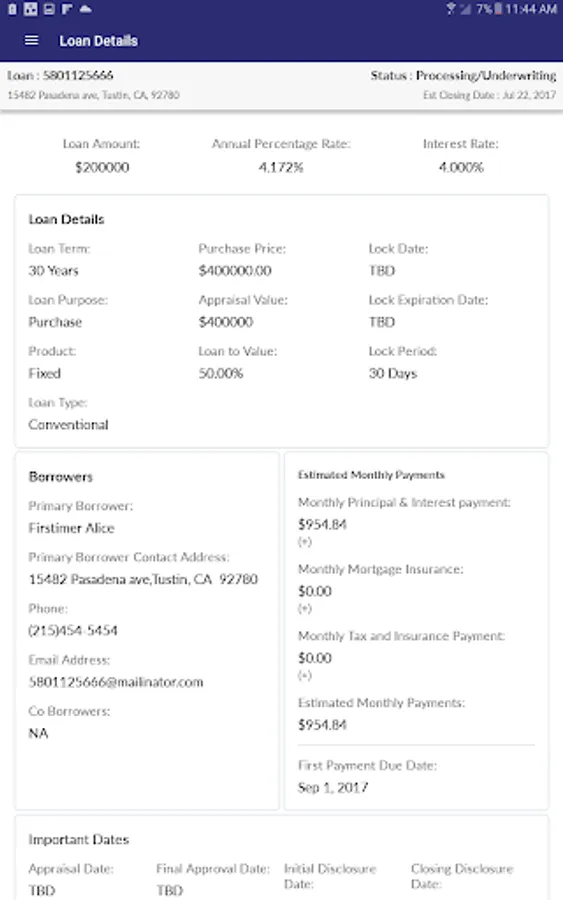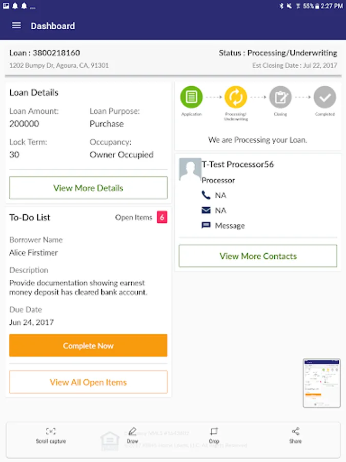 - Check loan status and tentative closing date within the app
